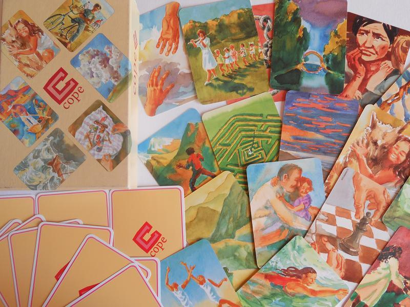 ✔ Активировать ресурсы и находить способы преодоления сложных ситуаций. COPE (Преодоление) создана израильским психологом Офрой Аялон. Колода состоит из 88 карт, которые делятся на две группы: Каждая из ресурсных карт отражает один из ключевых механизмов выхода из кризиса: 1. Диагностика травмы 2. Поиск ресурсов 3. Закрепление ресурса 4. Использование телесных техник 5. Техники когнитивно-поведенческ