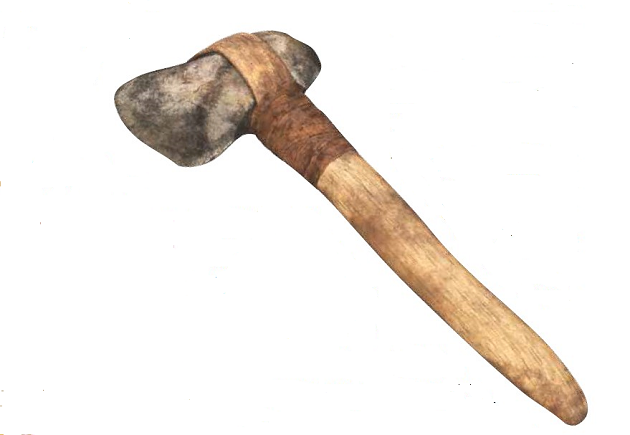 Примерно тогда же лезвие стали ковать из железной пластины, которую в горячем состоянии перегибали пополам, оставляя на месте сгиба проушину. Наконец-то появилась возможность вставлять топорище в лезвие, а не наоборот.
