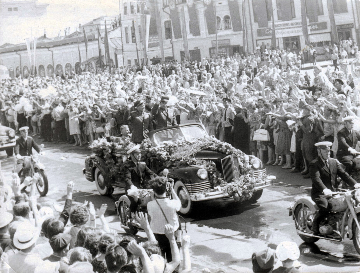 Улица Мира, 1965 год. Космонавты Леонов и Беляев с официальным визитом на Вологодчине.