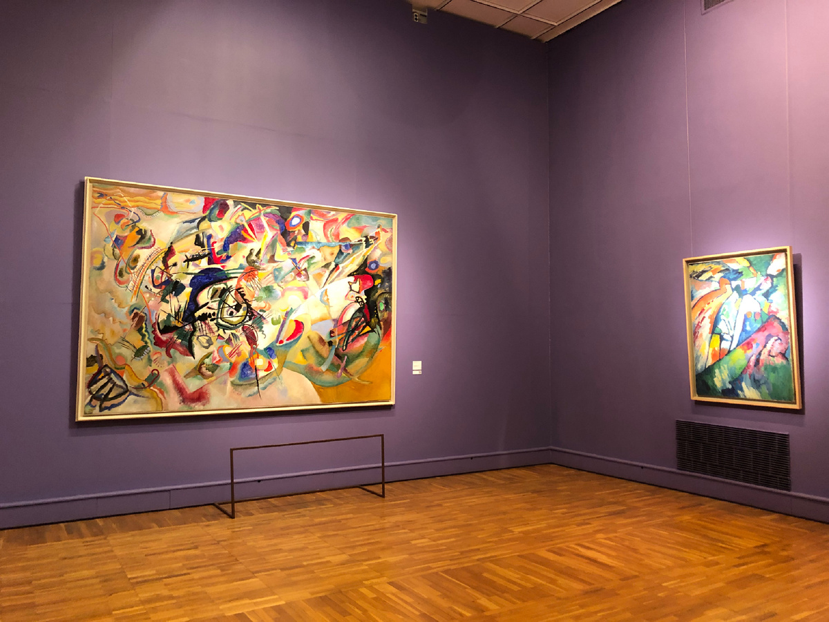 Зал Кандинского в Новой Третьяковке оформили в фиолетовом цвете. На его фоне живопись кажется гораздо ярче, сочнее, словно играет большей полнотой красок. Даже такое смешение чёрно-серо-непонятного, очень точно названное автором "Смутное" (всё логично, шёл 1917 год) приобретает яркость.