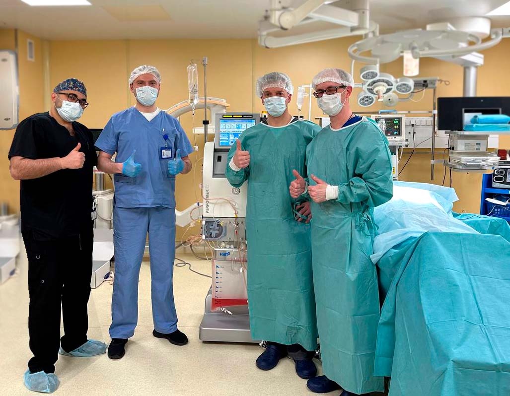 После завершения операции, в определенных местах в брюшной полости устанавливают катетеры и подсоединяют их к перфузионной системе, которая обеспечивает подачу нагретого раствора химиопрепарата.