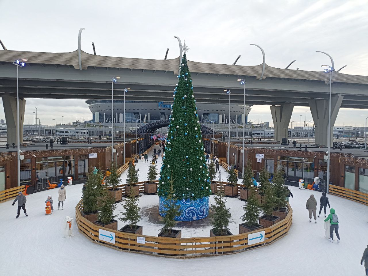 Этой зимой, если в 2025 году, например, январь в Петербурге можно было так назвать, в городе открылся самый большой каток в мире. В общественном пространстве Флагшток теперь можно покататься практически по всему западному побережью Крестовского острова. В пасмурное субботнее утро я приехал кататься на этом катке, рассказываю и вам, что есть интересного около станции метро Зенит.