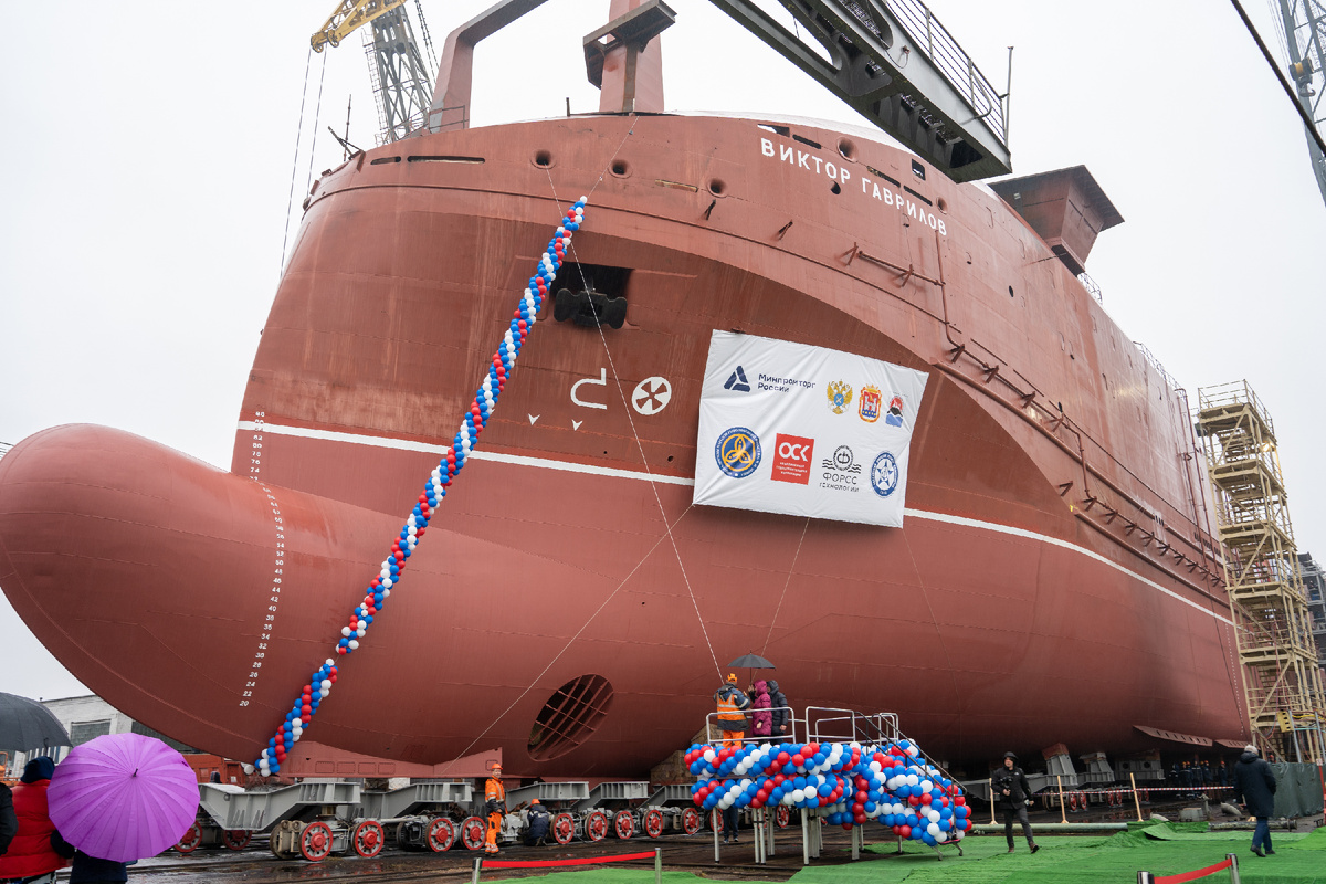 Торжественная церемония спуска на воду большого морозильного рыболовецкого траулера (БМРТ) «Виктор Гаврилов» проекта 5670FT состоялась на заводе ОСК «Янтарь». Это самый крупный БМРТ, строящийся в России.