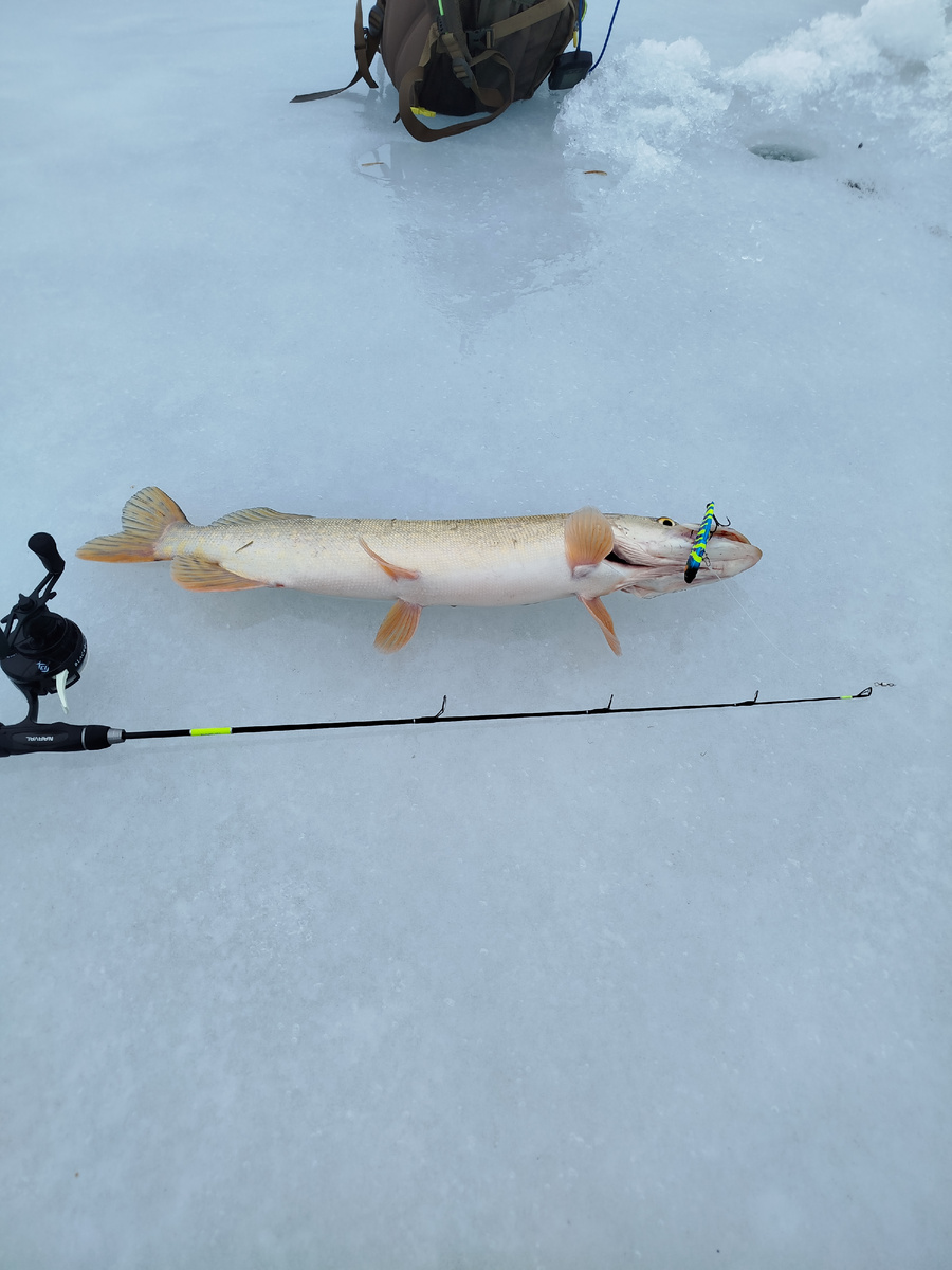Начну эту статью с третьего нолика в этом сезоне. Рыбалка происходила 27 января. Погодные условия были следующими температура 0 градусов да 26 января было -10, ветер 3 м.с юг, 769 атм.дав., луна убывающая. По традиции лов начал на привычной локации и на привычный балансир. Реакция рыбы была слабой. Перебирал приманки и более менее реакцию увидел на виб 85 в натуральном цвете. Выходов было много и поднималась рыба за ним больше чем на метр но поклевок не случалось. Ввиду ограниченного времени рыбачил в одной локации с нулевым результатом. Следующая рыбалка происходила 31 января. Погодные условия были следующими температура +2 градуса, 762 атм.давление., ветер 3 м/с запад, луна растущая. По традиции лов начал в той же локации и на туже приманку. Выходы были но вялые. Перебирая приманки на лунке далеко за третьем десятке ставлю виб 80 и после третьего взмаха получаю уверенную поклёвку. Щука 1600. На ней даже пассажиров немного. Продолжаю рыбачить на этот виб и на очередной лунке после вто
