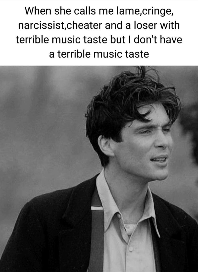 Когда она называет меня убогим, стрёмным, нарциссичным изменщиком и неудачником с ужасным музыкальным вкусом, но у меня не ужасный музыкальный вкус