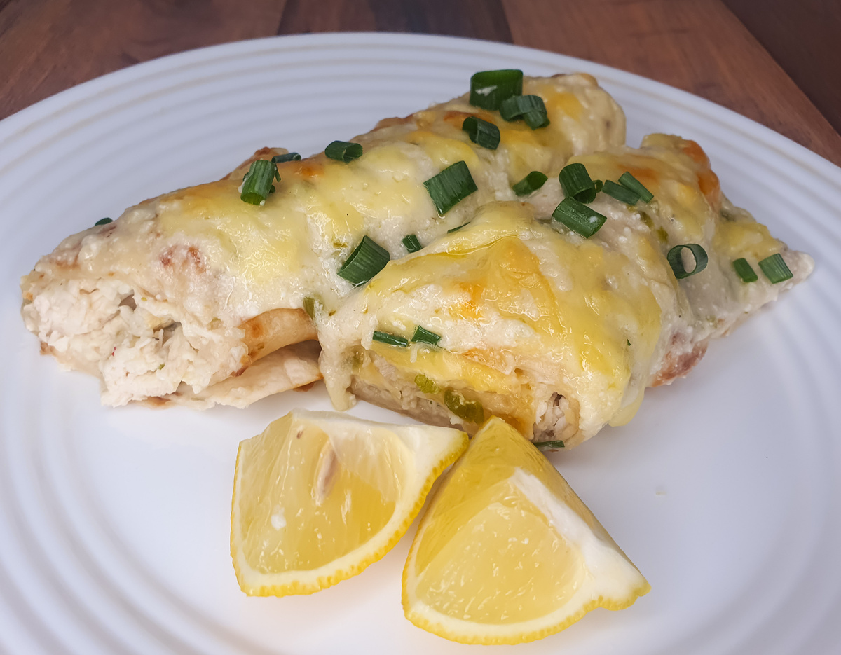 Рецепт этого простого блюда в мексиканском стиле заинтересовал меня прежде всего сочетанием сливочного соуса и острого перца. Согласитесь, сочетание не самое привычное. Сливочные соусы я очень люблю, и особенно люблю сыр, а в этом блюде его используется аж три вида, так что я решила попробовать. Вышло вкусно, при этом с моим количеством перца чили остринка получилась не яркой, а слегка на горизонте, что не очень привычно для мексиканского блюда. Так что если любите по-острее лучше возьмите два крупных чили на это количество курицы. Что касается тортильи, они бывают разного диаметра, можно взять любой. Небольшие энчиладас будут симпатичней смотреться при подаче, но такие тортильи реже встречаются в магазинах, поэтому мои энчиладас вышли довольно крупные. На вкус это никак не влияет, а для удобства подачи я просто разрезала их пополам. Начнём с подготовки начинки для энчиладас. На сковородку вливаем капельку масла, кладём туда перец чили и 10 минут жарим под крышкой. Перцу чили даём н