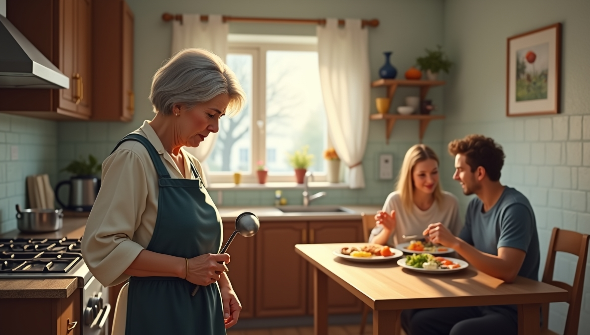 Галина Сергеевна сидела у окна, держа в руках чашку чая, который уже давно остыл. За окном шумели вечерние улицы, жизнь кипела, а у неё внутри — пустота. Она устала. Не просто физически — устала душой. Она всегда старалась быть заботливой матерью. Когда сын женился, она не стала навязываться, но, когда он сам предложил переехать к ним, согласилась — не хотела, чтобы молодые разрывались между работой и бытом. "Я помогу", — сказала она тогда. С тех пор прошло два года. И вот она сидит здесь, выжатая, как лимон, зная, что через десять минут снова встанет и пойдёт готовить ужин. — Галочка, ну как же без тебя, ты же у нас главная хозяюшка, — часто говорила невестка Оксана. Сын тоже воспринимал её труд как само собой разумеющееся. — Мам, ну ты же любишь готовить, тебе не сложно. "Я любила готовить", — подумала она, закрывая глаза. Она устала. Устала, что суп всегда варит она. Что вещи стираются и глажатся её руками. Что на кухне царит идеальный порядок не потому, что так захотели молодые, а