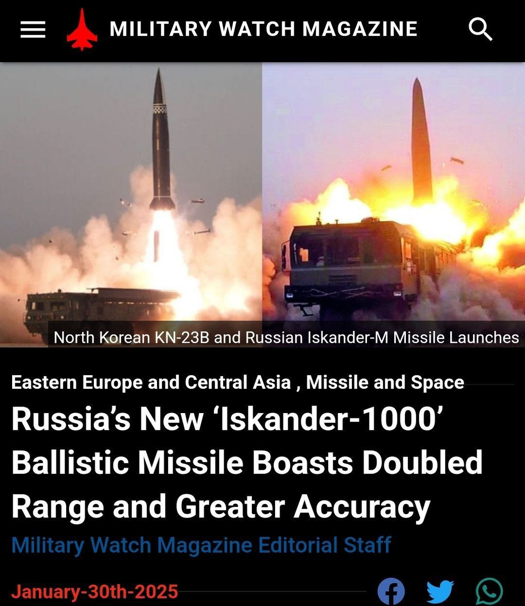 Россия близка к запуску серийного производства новой баллистической ракеты «Искандер-М», которая будет иметь вдвое большую дальность полета по сравнению с оригиналом и сможет поражать цели на расстоянии до 1000 км Об этом сообщает издание Military Watch Magazine. В материале также утверждается, что ракета будет более точной.