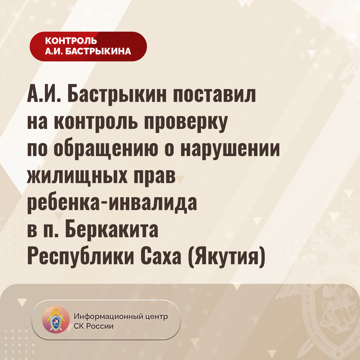 А.И. Бастрыкин поставил на контроль проверку по обращению о нарушении жилищных прав ребенка-инвалида в п. Беркакита Республики Саха (Якутия)