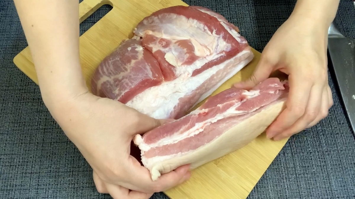 - Бекон. Солёное сало с большим количеством мяса. Его вырезают из спины или брюха забитого животного.