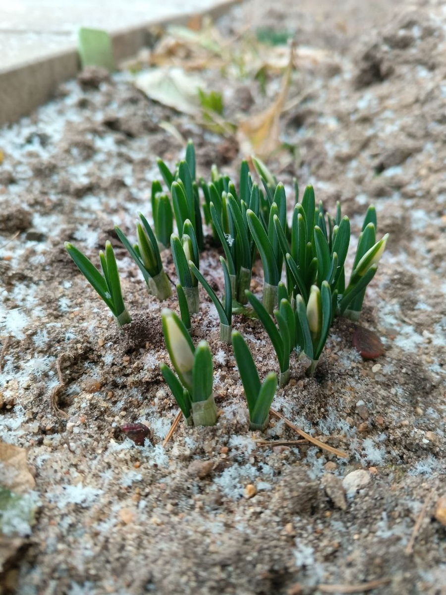 Муж ездил на дачу. Выезжал из Москвы по Киевскому шоссе. Говорит, почти сразу за МКАДом снег лежит. И на дороге, и в лесу. А потом через несколько километров снег пропал. Снова голая земля. Просто волшебство какое-то. На даче по-прежнему снега нет. Прошло две недели после нашего последнего визита на участок. Почти ничего не изменилось. Только слабый плюс сменился небольшим минусом. Пока небольшим. За это время у галантусов успели появиться бутоны. Правда, их немного. Если листья смогут перенести обещанные нам через несколько дней -17°, то бутоны вряд ли. Нарциссы, слава богу, одумались, больше не растут. Всё, что при оттепели радовало глаз, при морозе выглядит совсем не радужно. Мороз как будто придавил растения к земле. Все, у кого зимующие листья, лежат распластанные. Старые г.йх.ры выглядят жалко. У морозника покоричневели молодые листочки. Бодрячком только тимьян. У очитков видного и обыкновенного уже довольно большие почки. Вообще непонятно, что с ними будет. Они явно поспешили,