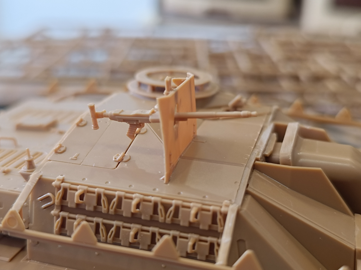 Дети в саду, под сериал с женой решил добить ШтуГ Эта статья - продолжение цикла о сборке модели StuG IV в 35 масштабе от "Звезды". Начало: Доброго времени! Рад Вам на моем канале! Для Вас пишет Дмитрий Лыков, автор канала Сервисный консультант - начинающий моделист и фанат автомобилей Чтобы не пропустить новое - подпишитесь на канал Инструкция по сборке не предусматривает, что на модели установлен пулемет. Бронещиток есть, а пулемета нет. Но детали для сборки пулемета: подвес, ствол и ствольная коробка, есть на литниках с деталями ходовой, так как они унифицированы с Pz Kpfw IV ausf H в 35 масштабе.