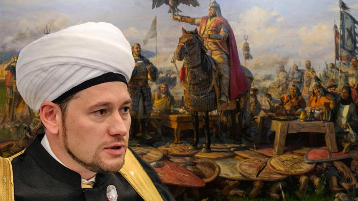 Духовное управление мусульман России внезапно оказалось в центре скандала, который завертелся вокруг… картины! Вот уж, казалось бы, совсем нетипичный сюжет для подобных историй, однако полыхнуло так, что мало не покажется. На картине изображены пирующие монгольские военачальники, которые одержали победу, и поставили свои столы, на помост, который установили прямо на телах русских князей, воевод и простых воинов. И они там долго и мучительно умирали под ликующими и пирующими монголами. Собственно, это более чем известный сюжет из истории – битва на Калке, который нам ещё в школе сообщали, здесь новости нет. Новостью стало, что сия картина висит в кабинете заместителя главы Духовного управления мусульман муфтия Дамира Мухетдинова, да ещё не просто так висит! Это не какой-то старинный раритет, а недавно написанная картина на специально выбранный сюжет. Такая вот завязочка была у этой истории, от которой, разумеется, сразу же подпрыгнули буквально все! Однако сегодня у «Царьграда» вышло пр