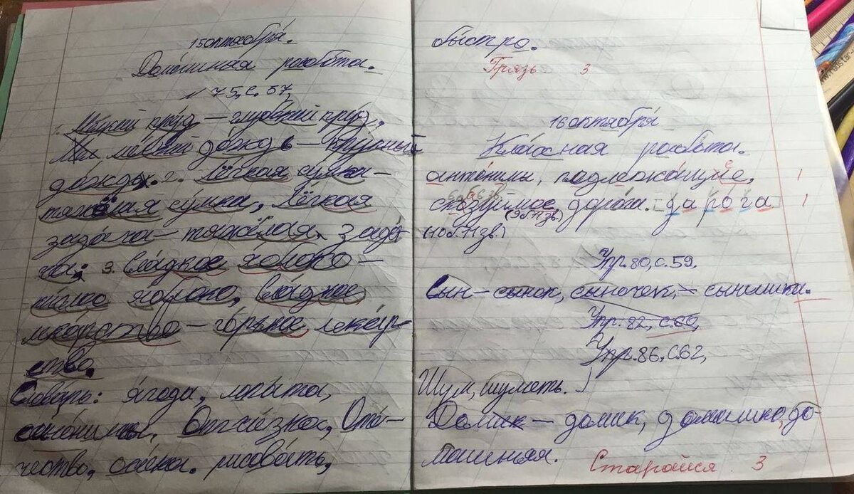 — Пишут, конечно. Но иногда смотришь в тетрадь — и ощущение, что они начертили буквы с помощью линейки.