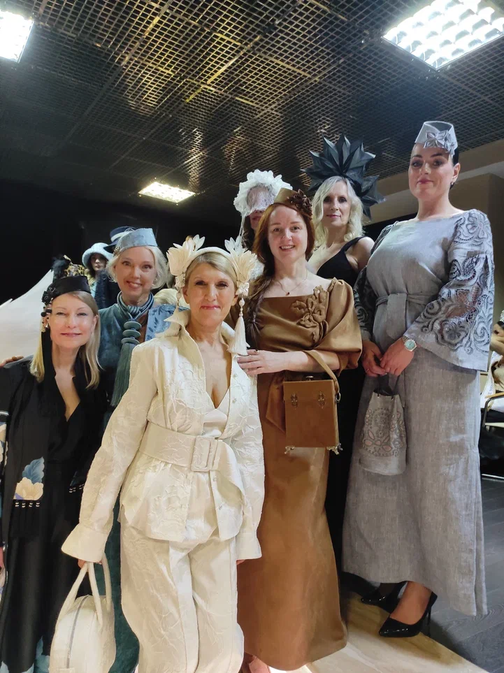 Сбилась со счета, сколько раз мне писали такое добрейшие комментаторы Дзена... Надеюсь, все они наконец отписались от моего бесполезного канала и мы с вами можем спокойно и приятно пообщаться 😂 И, да. Всё, что рождается в моей голове, определенно существовало в этом мире, я лишь соединяю те части, которые мне нравятся. В итоге набралась небольшая коллекция, которую показала на Неделе Моды Эстет в этот четверг как дизайнер одежды, сумочек и головных уборов Сегодня - про самый сложный и многокомпонентный костюм из множества элементов В основе - комбинезон из бархата С широким поясом и длинными завязками для утонченной талии Декоративное украшение, которое девочки немедленно окрестили галстуком )) Жакет из сложного и красивого жаккарда с бархатным тиснением Лаконичная шляпка, которая легким движением руки становится воротничком, который можно носить на две стороны на жаккардовую или на бархатную, с кисточкой или зажимом Каркасная сумочка в двух вариантах: с шариком-кистью в технике ким