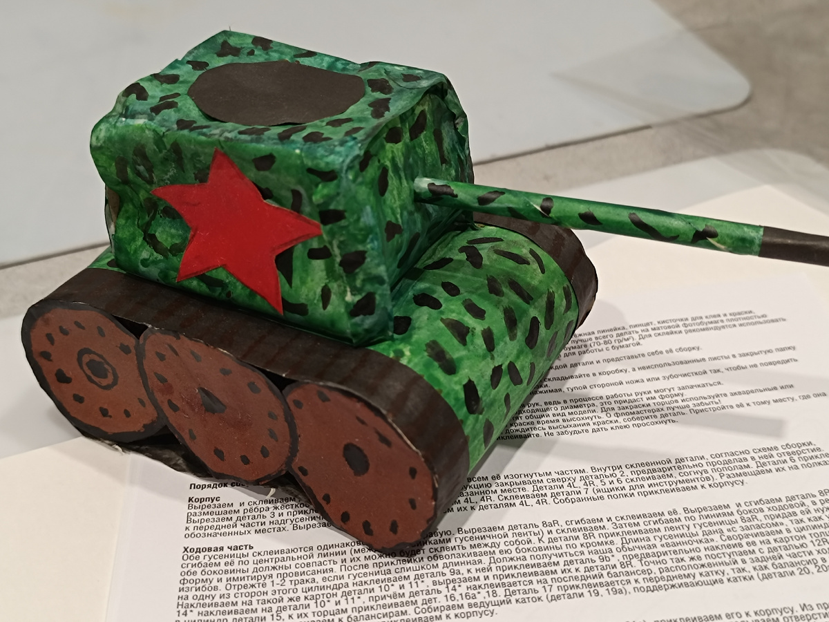 Но понял, что просто модель из коллекции не прокатит - слишком уж "читерски". Поэтому, решил дождаться ТЗ. Итого: танк должен быть из картона, а-ля тот, что дали как пример (он на фото выше).
