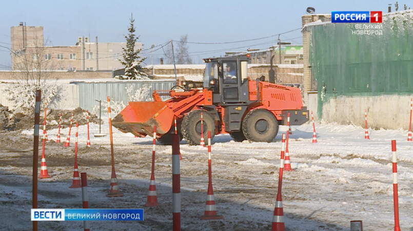 В новгородском Дорожно-транспортном техникуме прошли соревнования по скоростному маневрированию на фронтальном погрузчике