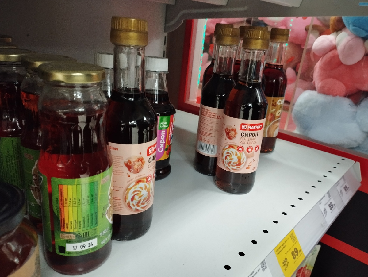 Увы, но самая частая покупка у меня - это сироп. Как бы сильно я не старалась отказаться от сахара и поменять многие продукты в пользу менее калорийных, утренний кофе с ароматным сиропом является уже традицией. У "Магнита" очень достойные сиропы, они придают напиткам хороший вкус, не создавая при этом ощущения, что это просто вода с ароматизаторами, а цена у такой покупки менее ста рублей, подумать только. Раньше заказывала на маркетплейсах, но тут цена отличная.