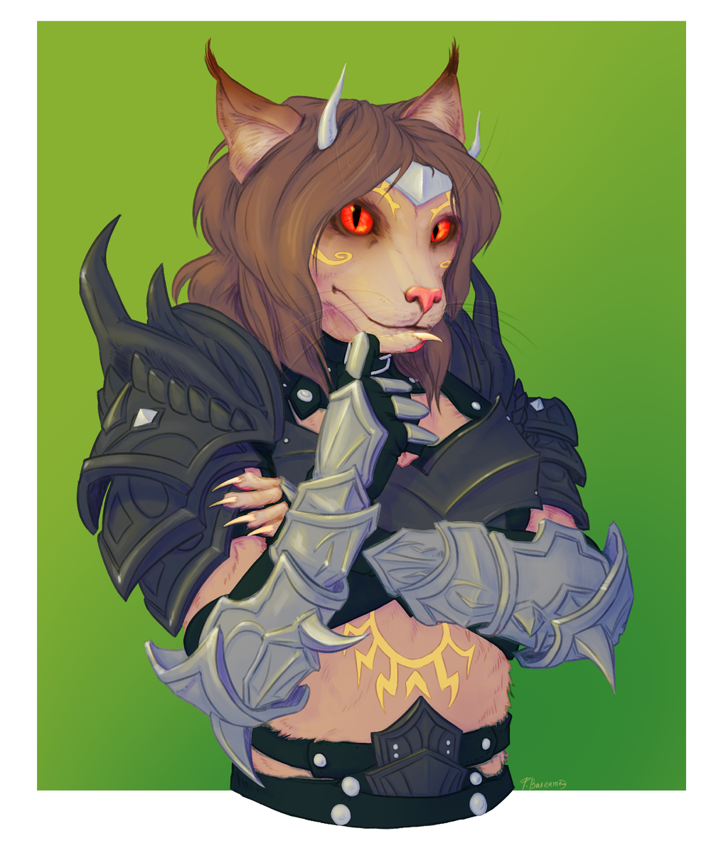 Каджитка замерла с поднятой в нелепой позе лапой, ее хвост нервно подергивался.