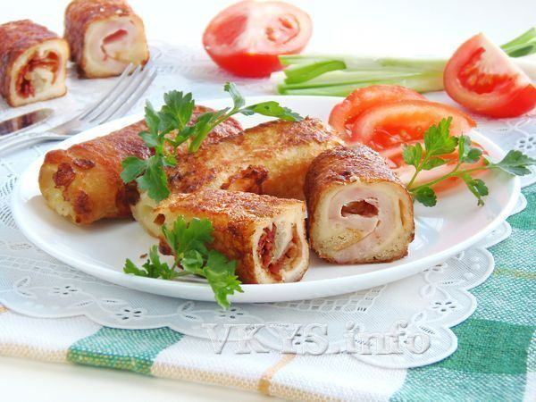 Рулеты из тостового хлеба с начинкой на сковороде Гренки – едва ли не самый простой, быстрый, бюджетный и сытный вариант для ежедневного меню. Сладкие или соленые – к завтраку они просто идеальны. Предложенный ниже рецепт заставит вас повозиться на кухне немного дольше, но, поверьте, результат приятно удивит даже самых капризных едоков. Гренки-рулеты к завтраку также можно приготовить как в десертном, так и в закусочном варианте. Единственное, пожалуй, относительное неудобство заключается в том, что для них необходимо использовать только свежий хлеб, поскольку подсохший ломтик раскатать в хлебный пласт-основу будет затруднительно. В качестве начинки будем использовать ломтики сыра и ветчину либо бекон. По сути, в готовом виде рулеты из тостового хлеба получаются полноценными миниатюрными бутербродами, облаченными в традиционную для гренок яично-молочную смесь. Вкусно, быстро и оригинально. Пробуйте! Ингредиенты Первым делом подготовим хлебную основу для рулетов. Чтобы все получилось, х