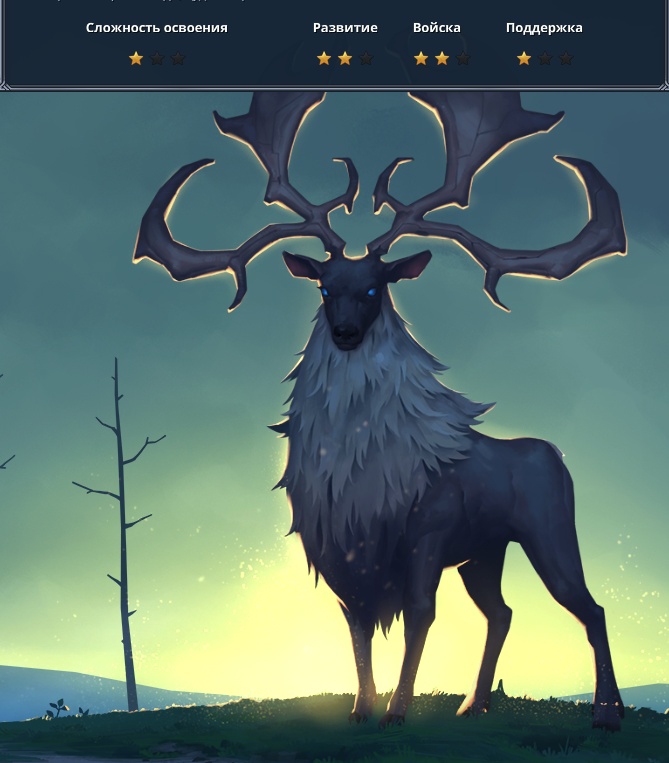 Кланы и королевства разбиты на 3 категории: Кланы которые могут без проблем зачищать карту или получают с этого ресурсы. //Кланы зачистки отмечены, как "1з", это связано с тем, что "1з" клан может сдержать только другой клан с такой же пометкой. Кланы которые могут легко выполнить определённые действия, которые дадут союзникам ресурсы одни из них: разведка и пиры, но могут быть и отличные. А так же должны быть готовы нанимать армию против ранней агрессии, когда союзник и третьей категории ещё не достиг полной боевой готовности. Кланы которые лучше прочих могут реализовать полученные ресурсы, как правило их экономика очень качественна, но требует вливания ресурсов, а войска имеют различные дополнительные усиления на ту же цену. Олень Категория: 2-3 Дизайн: Стремительное развитие через расширение территории и строительство каменной экономики с последующим выходом в качественную армию. Сложность освоения: средняя - обусловлена необходимостью построения плана развития заранее на продолжите