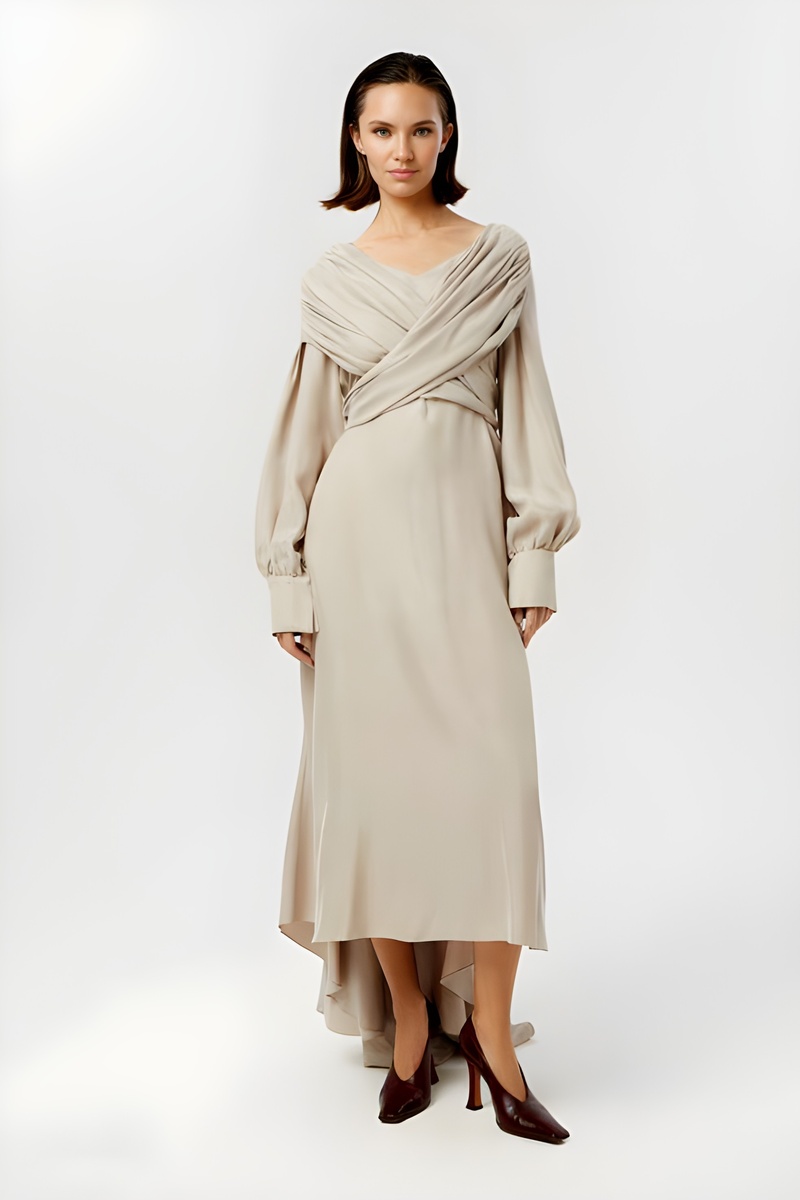 - Асимметричные вырезы и драпировки