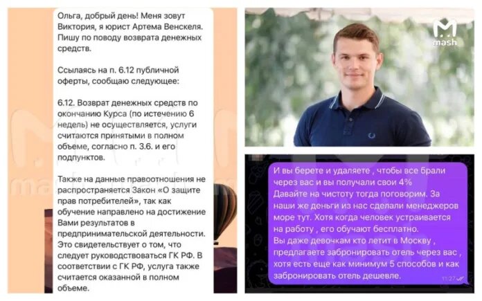 Популярный блогер-миллионник Артём, известный как «МореТУТ», оказался в центре судебного разбирательства — три его бывшие ученицы подали на него коллективный иск, требуя вернуть 375 тысяч рублей за курсы по турбизнесу, которые, по их словам, оказались пустышкой. Девушки рассчитывали получить полезные знания и стратегии для успешного предпринимательства, но вместо этого столкнулись с полным отсутствием обратной связи и бесполезными материалами. Адвокат Андрей Сергеев, представляющий интересы пострадавших, заявил, что каждая из них заплатила по 125 тысяч рублей за обучение, ожидая раскрытия профессиональных секретов. Однако после оплаты они обнаружили, что учебные чаты практически мертвы, а сам коуч был занят не наставничеством, а публикацией сторис с курортов. Когда девушки потребовали возврата средств, получили отказ. Об этом пишет тг-канал Mash. После этого они обратились к юристу и подготовили иск. По словам Сергеева, недовольных учеников гораздо больше, но блогер предусмотрительно с