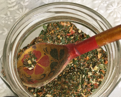 Ингредиенты: - 1 кг корнеплодов петрушки - 250 г корнеплодов сельдерея - 250 г цветной капусты - 250 г савойской капусты - 250 г моркови - 250 г кольраби - 5 плодов перца - 5 плодов острого зеленого перца - 500 г соли Приготовление: Измельчите промытые овощи с помощью мясорубки, затем хорошо перемешайте их с солью. Плотно уложите смесь в банки из темного стекла и герметично закройте. Для приготовления 3-4 литров супа используйте 1 столовую ложку этой овощной смеси.