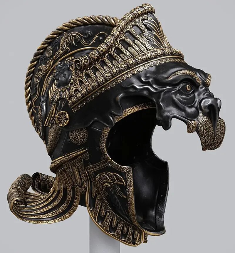Римская империя также использовала шлемы, и одним из самых узнаваемых образцов был Галеа. Галеа изготавливалась из бронзы и имела широкие поля, защищавшие шею и уши, а также щитки для щек и забрало, которое можно было поднимать или опускать.