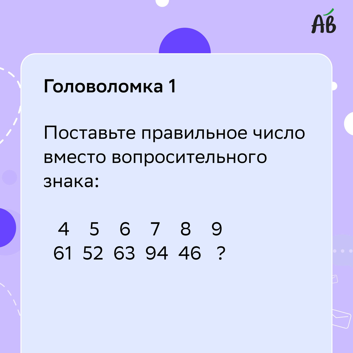 Друзья, сегодня у нас для вас свежая подборка интересных задач! 🎯 Некоторые из вас писали в комментариях, что прошлые головоломки были слишком простыми. Поэтому сегодня мы подготовили задачи, над которыми придётся подумать чуть дольше. Но не переживайте — все ответы по-прежнему логичны и просты, когда до них додумаешься. 😉 📌 Все задания — в карточках. Проверьте свою смекалку и не спешите заглядывать в ответы, которые ждут вас ниже. Удачи! 🚀 Ответы на головоломки: 1️⃣ Поставьте правильное число вместо вопросительного знака: 4 5 6 7 8 9 61 52 63 94 46 ? Ответ: 18. Объяснение: Числа нижнего ряда — это квадраты чисел верхнего ряда с перестановкой цифр. 2️⃣ Как достать теннисный шарик из глубокой трубы? Ответ: Спортсмены наполнят трубу водой до краёв, и тогда шарик всплывёт. 3️⃣ Название какого германского племени дало имя европейской стране? Ответ: Франки (Франция). 4️⃣ Принцип последовательности: 8, 2, 9, 0, 1, 5, 7, 3, 4, 6 Ответ: Цифры расположены в алфавитном п