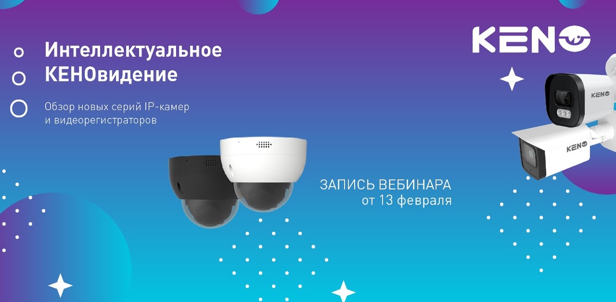 13 февраля в 11:00 (по МСК) прошел вебинар: Обзор новинок IP-камер и видеорегистраторов KENO.