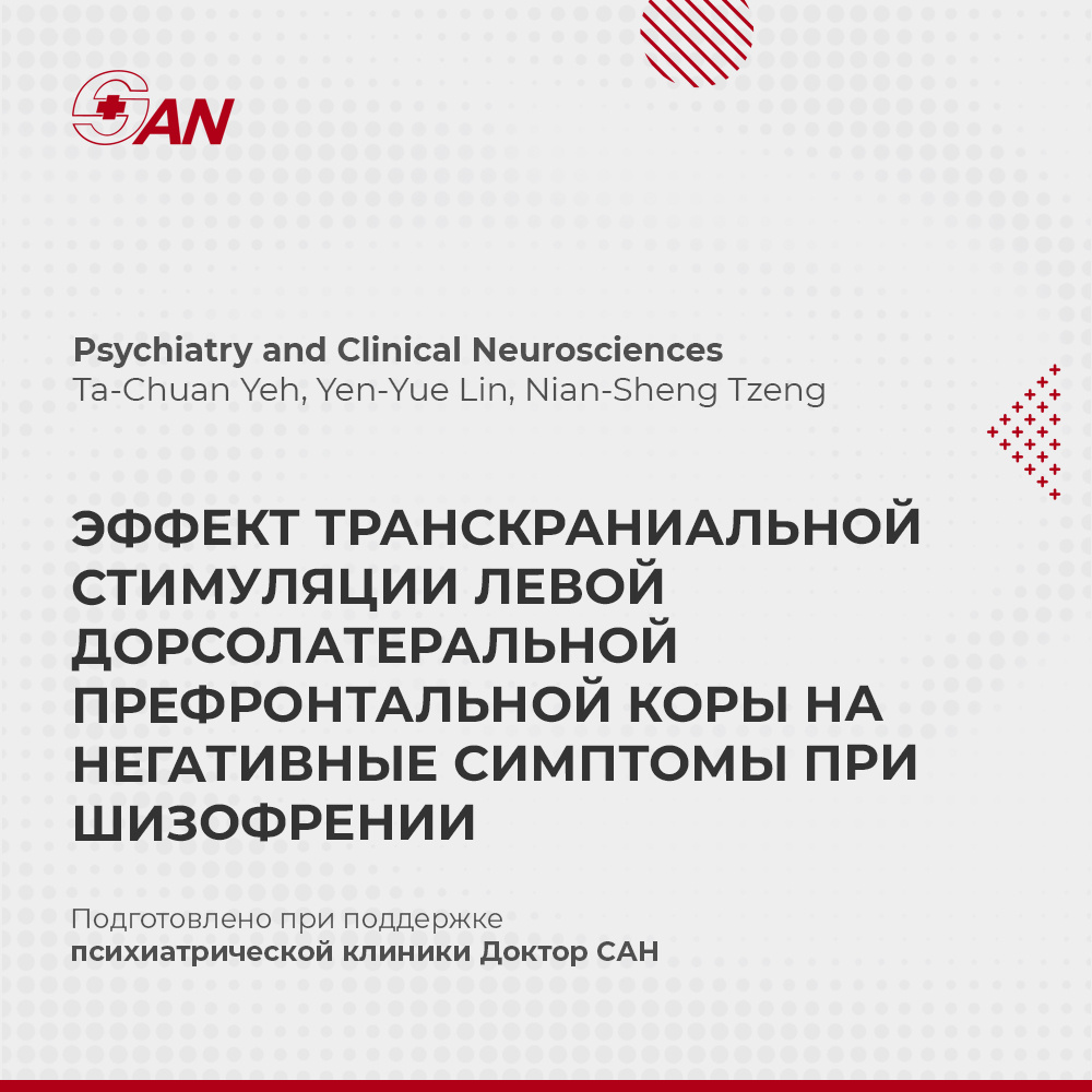В рандомизированном, двойном слепом, контролируемом испытании, опубликованном в журнале Psychiatry and Clinical Neurosciences, оценивался эффект направленной на левую дорсолатеральную префронтальную кору транскраниальной стимуляция постоянным током (HD-tDCS) у пациентов с шизофренией. Пациенты, получавшие активную транскраниальную стимуляцию, продемонстрировали значимое уменьшение негативных симптомов по сравнению с контрольной группой. Побочные эффекты были минимальными: 63,3% участников активной группы сообщали о легком покалывании на коже головы против 10,3% в контрольной группе. Кроме того, транскраниальной стимуляция постоянным током была связана со снижением функциональной связности в дельта-диапазоне ЭЭГ в сети пассивного режима работы мозга. Подробнее о лечении шизофрении: https://doctorsan.ru/lechenie-shizofrenii