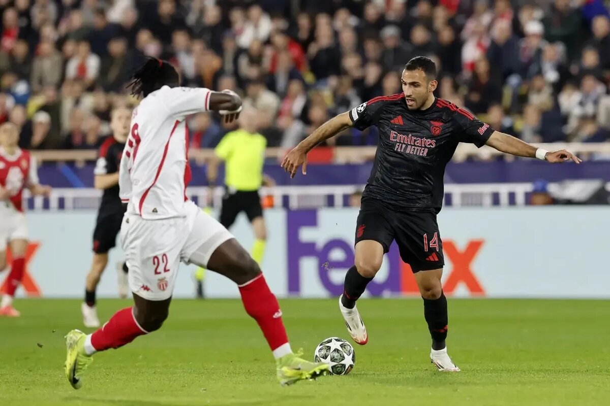 Монегаски в целом по уровню могут соперничать с «Бенфикой», у пары нет фаворита. И первые 45 минут мы видели равное противостояние. «Бенфика» поджимала хозяев – при этом подопечные Адольфа Хюттера находили чем ответить на регулярные выпады «орлов». Хорошее движение показывали Аклиуш и Головин. Манье нашёл момент для крайне опасного удара на девятой минуте – отыгрался в стенку, вышел на свободное пространство и бил в дальний угол.