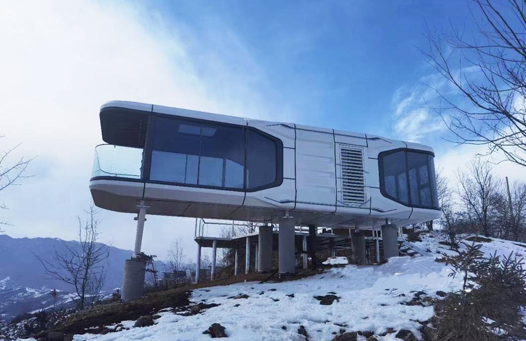 Высокопрочная оцинкованная стальная конструкция; Изоляция: тепло- и шумоизоляция Панорамная изолированная система окон с двойным остеклением Размер: 11.5мХ3.3мХ3.2м; Площадь: 38,0 кв.м Вместимость: 4 человека Общая потребляемая мощность: 10 кВт Общий вес: 9,5 тонн Система каркаса из оцинкованной стали Модуль корпуса из алюминиевого сплава с фторуглеродным напылением Система теплоизоляции, водонепроницаемости и влагостойкости конструкции Двери и окна из полого закаленного стекла Мансардный люк из полого ламинированного закаленного стекла Входная дверь из нержавеющей стали Панорамный балкон Система управления Панель включения/ выключения при вводе карты памяти Панель подсветки в мультиэкранном режиме Интеллектуальное интегрированное управление освещением/ шторами Интеллектуальное голосовое управление по всему дому Мобильный интеллектуальный контроль доступа Внутренняя отделка Потолочные и настенные модули стандартного цвета Экологически чистые деревянные полы Стеклянная дверь в ванной ко