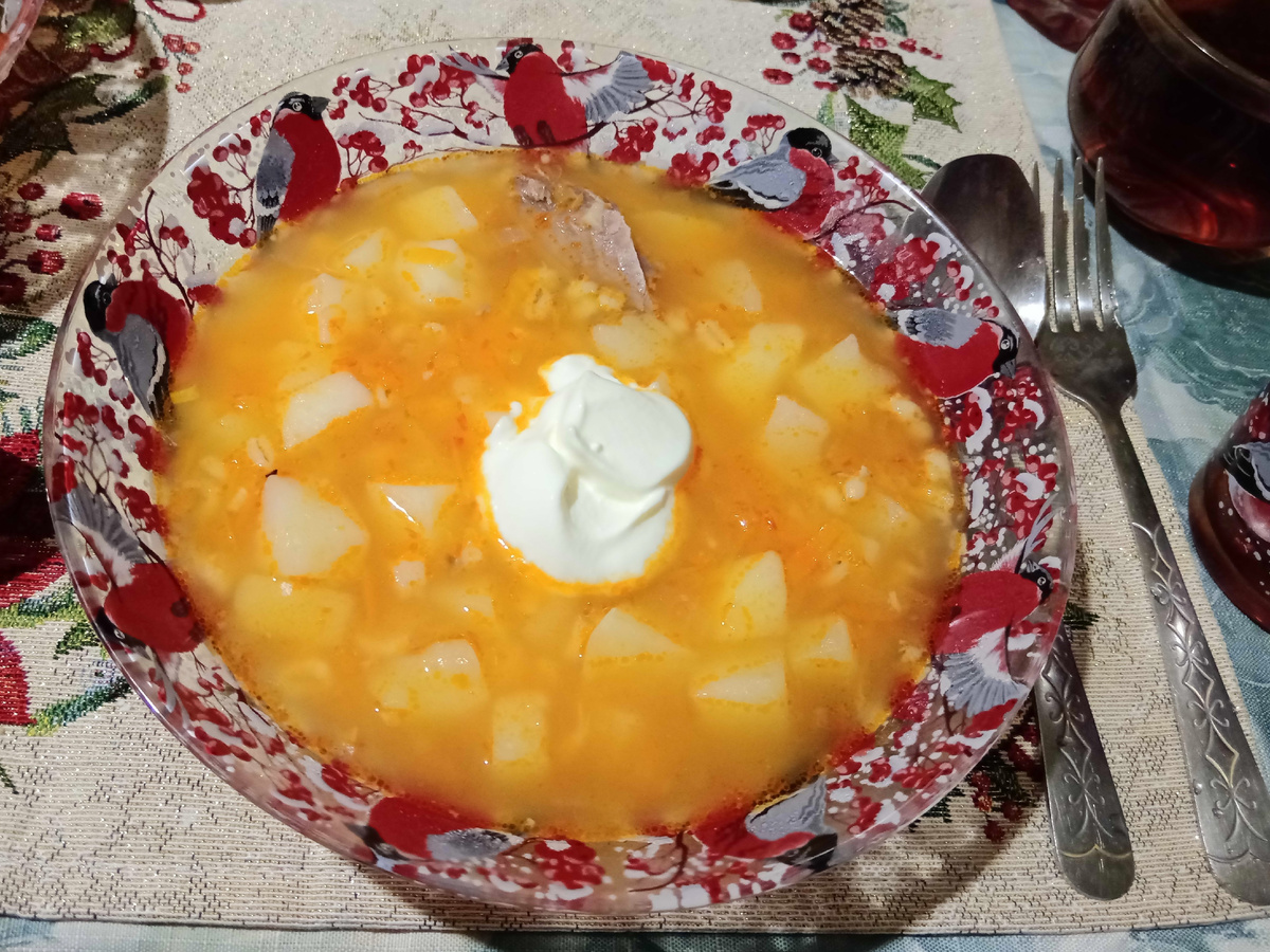 На стол щи уральские подаются горячими со сметаной.