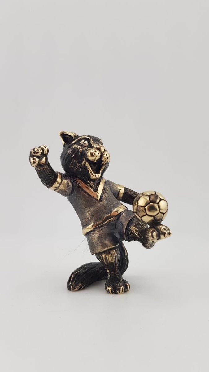 Грация и ловкость — вот его стихия. В бронзовом облике он застыл в мгновении удара, когда мяч послушно следует за лапой, а азарт сверкает в глазах. Этот кот символизирует стремление к победе, выдержку и спортивный дух. Кажется, еще чуть-чуть — и он ворвется на поле, забивая решающий гол!