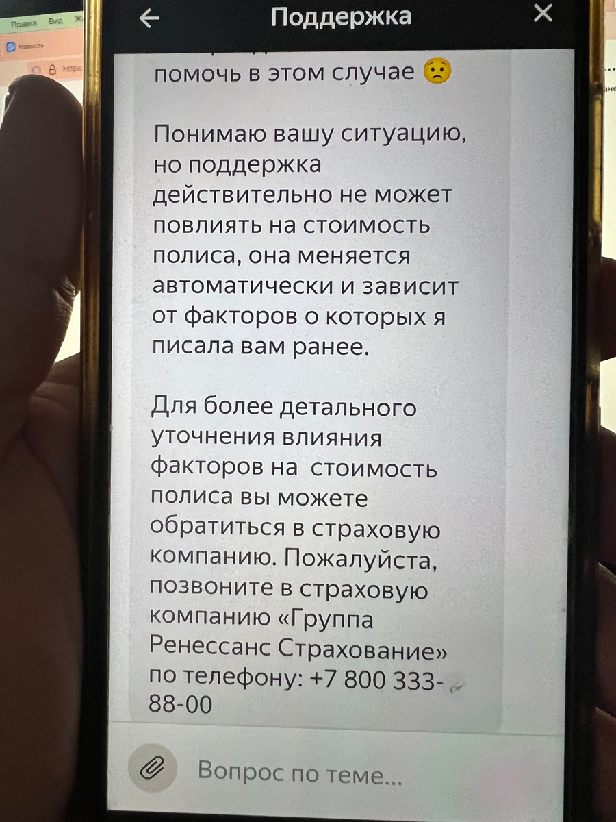 2. В ходе недолго общения, в два этапа, меня направили в Страховую группу Ренесанс. Но собирает данные Яндекс и почему-то отказывается их предоставить. В соответствующие органы, после написания статьи, я на направлю запросы, чтобы разобрались в ситуации. Этим заинтересуется ФАС и Роспотребнадзор. Результаты я потом опубликую.