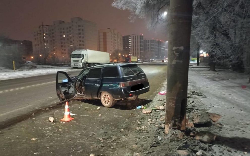 Водитель ВАЗа попал в больницу после ДТП с бетонным столбом в Воронеже