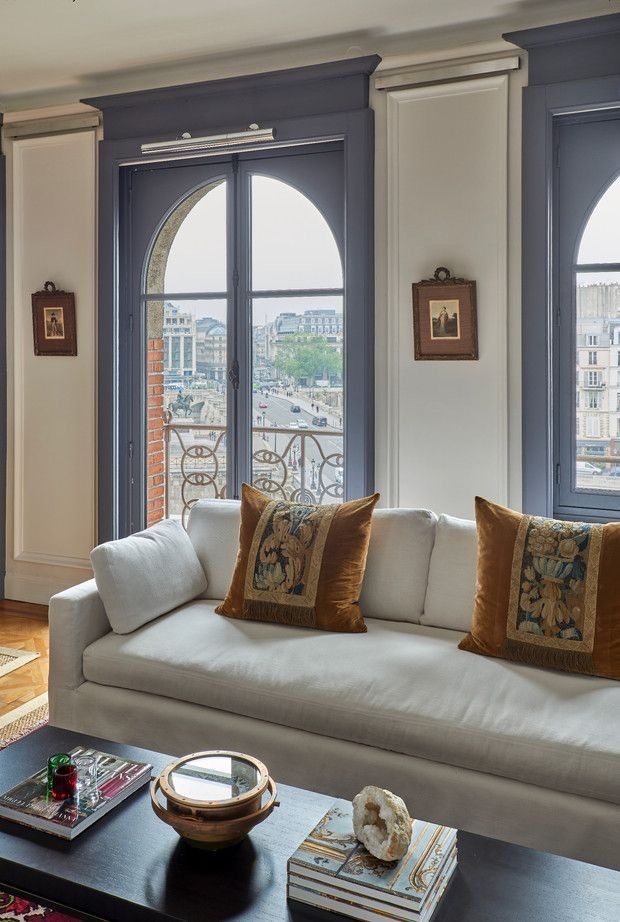 Рубрика #цветвинтерьере . Здесь есть интересные приемы и я заострю на них внимание : 1)Вместо штор цветные оконные рамы и интересное обрамление окон. Штор нет, но этот подход делает окна выразительными. 2) На балконе очень красивые металлические ограждения и красивый вид, что оправдывает окна без штор. 3) В интерьере ярко выражена симметрия. Большинству людей нравятся именно симметричные интерьеры. Симметрия всегда идет под руку с гармонией. Отсюда ритмично повторяющиеся картины на стенах и одинаковые подушки на диване. #цветвинтерьере #стмметрия #гармония Автор : дизайнер интерьера Марина Жеренко Телеграмм :