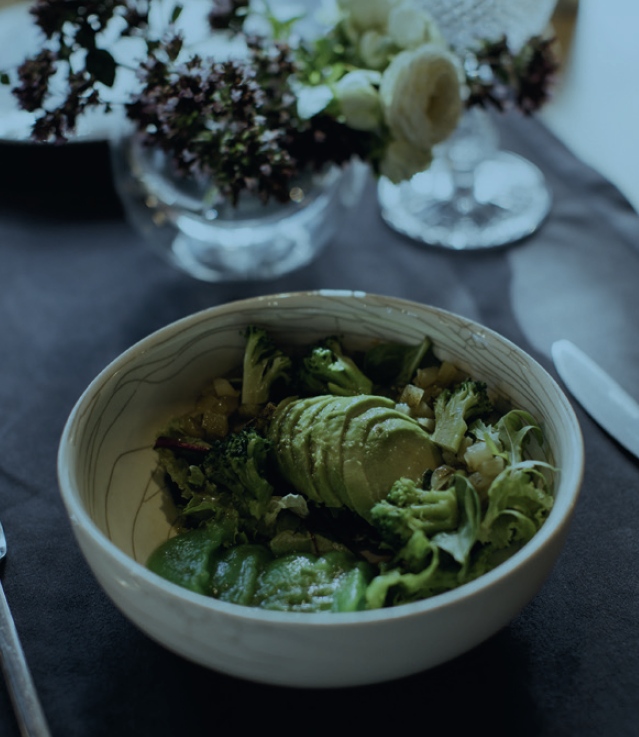Зеленый салат — полезное, а главное, легкое в приготовлении блюдо, ведь миксовать хрустящие листья можно как душе угодно. Предлагаем взять за основу рецепт, которым поделился Александр Духанин, шеф-повар «Уткино country house». ИНГРЕДИЕНТЫ Крем из сельдерея - 40 г Капуста брокколи - 30 г Бобы эдамаме - 20 г Мякоть авокадо - 40 г Свежий огурец - 30 г Микс салатов - 20 г Имбирный соус - 25 г ИМБИРНЫЙ СОУС Оливковое масло - 100 мл Мед - 40 г Имбирь (корень натереть на мелкой терке и выдавить сок) - 20 мл Сок лимона - 15 мл Соевый соус - 30 мл КРЕМ ИЗ СЕЛЬДЕРЕЯ 1. Запекаем в печи зеленое яблоко до мягкости, чистим его от кожуры и семян так, чтобы осталась только мякоть. 2. Стебель сельдерея нарезаем произвольно и варим в течение 5 минут, после чего взбиваем блендером до однородной массы и протираем через мелкое сито. 3. Мякоть яблока и сельдерея соединяем в пропорции 100 грамм на сельдерея 50 грамм мякоти яблока. ИМБИРНЫЙ СОУС 4. Зеленый салат не так прост, как кажется на первый взгляд, и