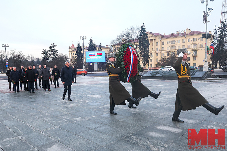 Делегация из Северной Осетии — Алании во главе с Сергеем Меняйло 13 февраля возложила цветы к монументу Победы в честь погибших в Великой Отечественной войне, передает корреспондент агентства «Минск-Новости».