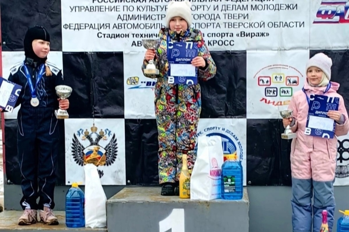 По итогам заездов гонщицы завоевали пять медалей. В Твери на стадионе технических видов спорта «Вираж» СШОР «Лидер» состоялись областные соревнования по автокроссу и традиционный Кубок города «День защитника Отечества». Традиционные гонки собрали на старте 38 пилотов разного возраста из Твери, Ржева и Калининского округа. В их числе за руль сели семь девушек. Опровергнув известную поговорку, юные красавицы составили достойную конкуренции сверстникам и даже более опытным пилотам, собрав коллекцию из пяти медалей, в том числе – золота, серебра и трех бронз. 9 – 11-летние воспитанницы муниципальной СШОР «Лидер» города Твери заняли весь пьедестал почета в классе «Д3-мини». Итоговую победу одержала Юлия Орлова, второе место заняла Мария Смирнова, третье – Дарья Аверкина (на снимке). Дарина Куликова из Ржева стала бронзовым призером в классе «Д3-250» среди гонщиков 10 – 15 лет. Такого же результата добилась и ее землячка Софья Чижова в классе «Д3-спринт» среди пилотов 16 лет и старше. Всего