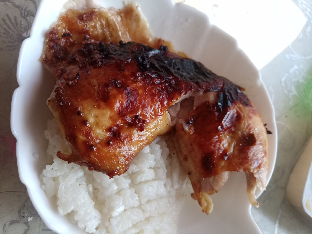 Когда времени ну просто в обрез, то учишься делать все ооочень быстро. Дом - полный голодных ртов и в единственный выходной нужно не только наготовить вкусняшек, но и отдохнуть. Да, трое детей, две работы и очень мало времени. Но еда должна приготовится быстро и быть вкусной. За красотой не гонюсь, лук по пол часа, красивыми кружочками не режу.))))) Продукты: Для маринада: Курицу я купила после работы, хорошо обмыла надрезала вдоль грудок и замариновала. Утром осталось только поставить в духовку, прикрыв фольгой. Запекать при температуре 200 градусов 30минут, занимаясь другими делами! Теперь можно убрать фольгу. Смешать соевый соус с Наршараб, потом смазать курочку и снова в духовку минут на 15-20 при градусаз 180. Февраль, на улице мороз, но светит очень яркое солнце с теплыми лучиками... Параллельно в мультиварке готовится рис на гарнир. Минимум действий. Ну вот, курочка готова. Правда на фото кажется, что подгорела, но на самом деле самое то.