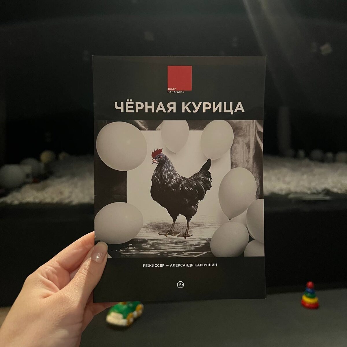 Сюжет повести Антония Погорельского «Чёрная курица или Подземные жители» знаком всем, поэтому лаконичное описание на сайте театра меня совсем не смутило. А фраза «для семейного просмотра» стала решающей. Заявленный в программке жанр сторителлинга, на мой взгляд, выглядел больше как плейбек или импровизация, причём импровизация очень неумелая и скучная. На сцене играют только два актёра, которые много и сумбурно говорят, пытаются шутить и смешить зал. Кто-то смеялся, но в целом дети (составлявшие 90 процентов зрителей) скучали, болтали, ёрзали, так как теряли нить повествования в этом сложном моно-диалоге, и заметно оживлялись только на моментах анимации, когда актёры бросали в зал мячики, надувные шарики с перьями, бумажки и т.д. Продолжительность спектакля 1 час 15 минут. Увы, но поучительная, грустная сказка Погорельского с глубокой философией и важными смыслами о том, как важно не заноситься, держать данное слово и оставаться человеком в Театре на Таганке превратилась в любительс
