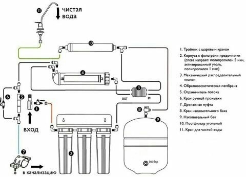 Принцип работы системы фильтрации заключается в использовании осмосной воды, которая подается из водопроводной сети для очистки, а все загрязнения удаляются с помощью фильтра и выведутся в канализацию. Для обеспечения надежной работы ключевого компонента системы — мембраны, важно уделить внимание этапу предварительной очистки. В этом процессе могут использоваться до трех различных фильтров, которые подготавливают воду перед прохождением через мембрану.