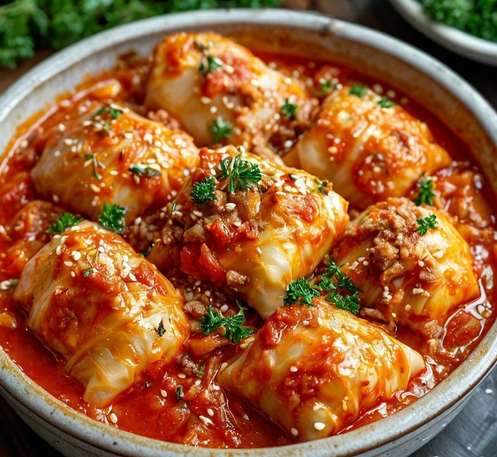 Это традиционное блюдо, которое сочетает в себе мягкие капустные листья, фарш из свинины и разнообразные овощи, приготовленные в ароматном соусе. Ингредиенты: Для голубцов: - 500 г свиного фарша - 1 стакан риса - 1 крупная луковица - 1 морковь - 1 яйцо - Соль, перец по вкусу - 10-12 капустных листьев Для овощного соуса: - 2 помидора - 1 болгарский перец - 1 луковица - 1 морковь - 2 зубчика чеснока - 2 ст. ложки томатной пасты - 1 стакан воды или бульона - Соль, перец, сахар по вкусу - Растительное масло для жарки Приготовление: 1.Подготовка капустных листьев: - Капусту разберите на листья. Опустите их в кипящую воду на 2-3 минуты, чтобы они стали мягкими. Затем остудите и удалите толстые прожилки. 2. Приготовление начинки: - Рис отварите до полуготовности. - Лук и морковь мелко нарежьте и обжарьте на растительном масле до мягкости. - В миске смешайте свиной фарш, рис, обжаренные овощи, яйцо, соль и перец. Хорошо перемешайте. 3. Формирование голубцов: - На каждый кап