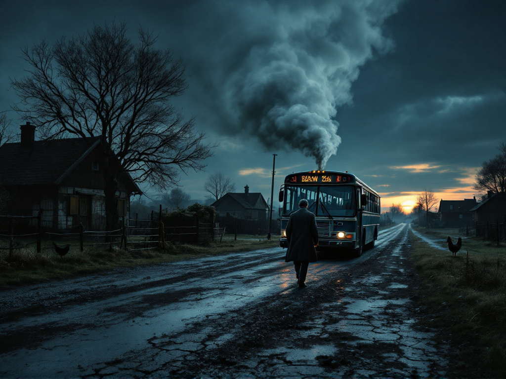 Автобус нехотя остановился, выпуская облако серого дыма. Двери открылись с тихим скрипом, и я ступил на потрескавшийся асфальт одинокой деревенской остановки. Сумерки ложились на землю мягкой дымкой, а за горизонтом медленно угасало солнце.