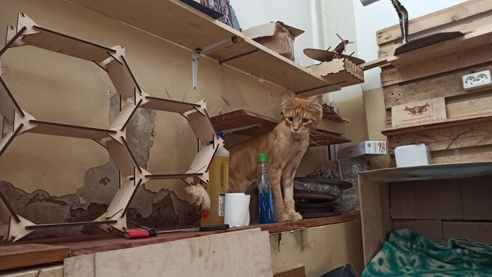 Всем привет! Сейчас я безымянный человек, который давным - давно начал заниматься лазерной резкой, начал делать это с другом, по итогу, у меня полностью пропало желание что-то постить, выкладывать и фотографировать для контента. А, вдруг, все увидят) абьюз, но только в рабочих отношениях) а безымянный потому, что имя, и логотип, которые я придумал, больше не мои. Начну со старого. Когда был только 1 лазерный станок и находился в закутке у фрезеровщика. И был котяра, которого я по итогу отвоевал домой, потому что нехорошо таким котейкам по грязи ходить и ей дышать) 22 Год:) Только на тот момент перебрались в это помещение, начали его потихоньку обживать. Плюс, от соседства с фрезеровщиком были плюсы, я гравировал ему кальянные столы, тогда эта тема была у него очень раскачана и заказов было много. Мой небольшой станок с полем 60*40 прекрасно с задачами по гравировке справлялся. Ещё тогда были мысли над изготовлением конструкторов и продажей их через МП. Но кому мы нужны с нашими констру