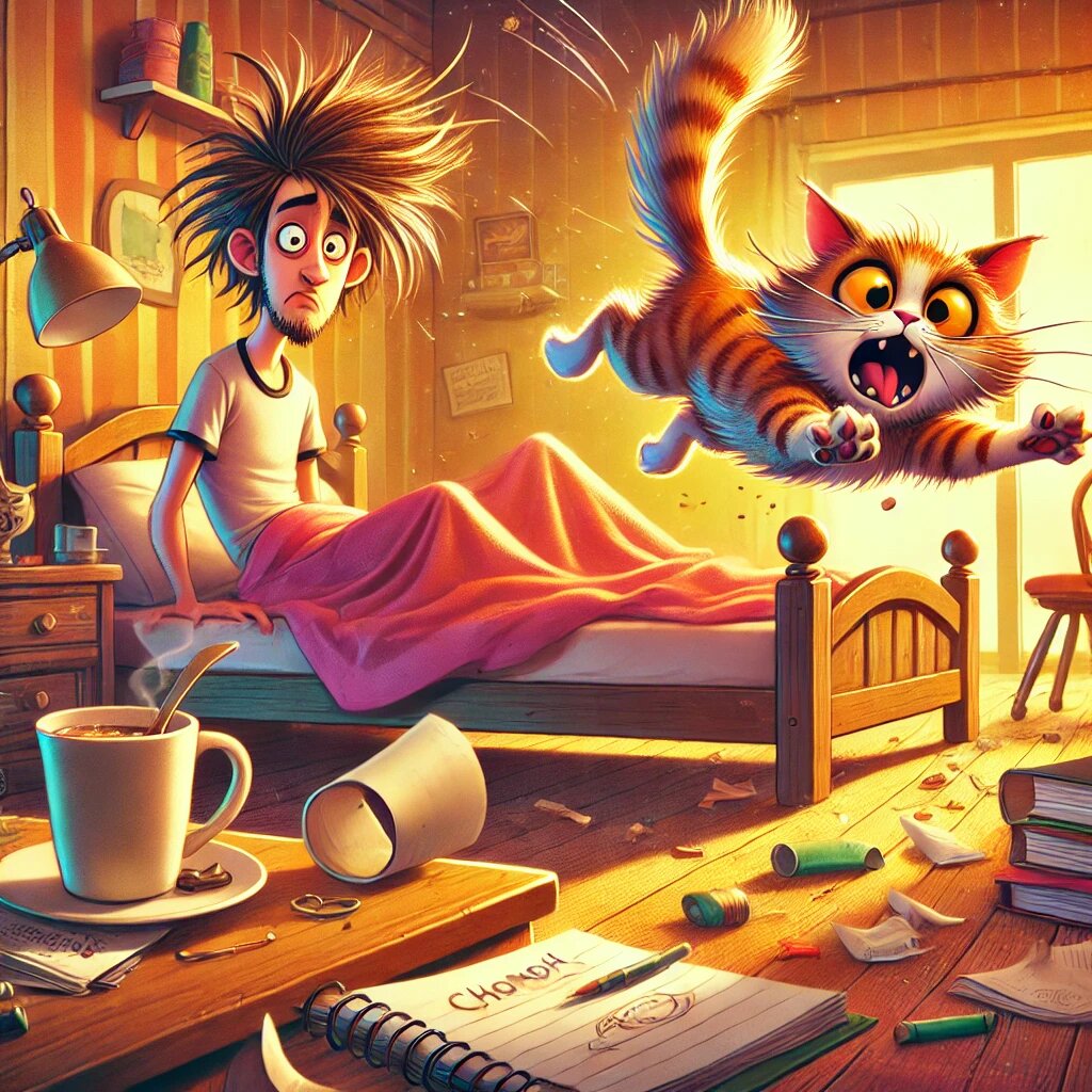 Каждое утро я просыпаюсь в царстве хаоса. Первый звук, который я слышу, — это не будильник, а моя кошка, решившая, что сегодня именно тот день, когда она должна устроить революцию на моем рабочем столе. Глядя на этот пушистый переворот, я понимаю: если не относиться к жизни с юмором, она победит тебя без шанса на реванш.