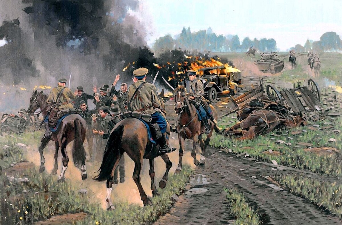 Начальный период Великой Отечественной показал ту самую недооценку кавалерии. А ведь получилось так, что летом и осенью 1941-го кавалерийские соединения оказались наиболее устойчивыми по сравнению с тем же мехкорпусами. Ярким примером может послужить печальная судьба 6-го механизированного корпуса, которому было приказано нанести контрудар на Гродно, и который был уничтожен всего за одни сутки во многом благодаря отсутствию горючего. Те же самые мех.корпуса в начале войны оказались громоздкими в управлении и несли огромные потери еще на маршах, по итогу во встречных сражениях и окружениях практически полностью сгорали. А вот что касается кавалерийских корпусов, то несмотря на большие потери летом и осенью 41-го,они оказались куда более мобильными и подвижными в любых условиях местности, и смогли совершать не только стремительные марши, но глубокие рейды по растянутым тылам немецко-фашистских войск. И это при том, что действовала конница в бою в основном в пешем порядке, в походном - при совершении маршей и преследовании отступающего противника.И повторюсь, опять же, независимо от условий местности, будь лесистая или же лесисто-болотистая. А теперь давайте перейдем к примерам. Кстати, забегая вперед, да бы не забыть, как раз Ровно-Луцкая наступательная операция 44-го года тому пример, когда сразу два кавалерийских корпуса прошли по болотам в районе г.Сарны и нанесли удар по группировки немецко-фашистских войск. Но да ладно, вернемся к событиям начального периода войны.